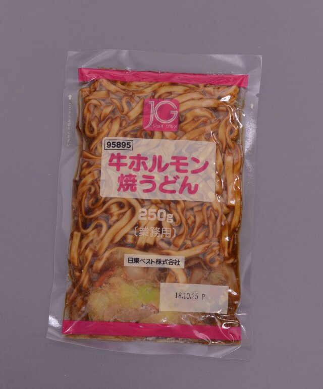| 原材料 | めん(小麦粉(国内製造)、食塩、植物油/加工デンプン、ソルビトール、乳化剤)、野菜(キャベツ、にんじん)、牛もつ(小腸)、牛すじ(メンブレン)、しょうゆ、植物油(大豆・ごまを含む)、砂糖、粉末水あめ、ポークエキス、粉末しょうゆ、りんご濃縮果汁、にんにくペースト、トウチジャン、粉末状混合調味料、みりん、清酒、梅濃縮果汁、香辛料、大豆食物繊維、ワイン、しょうが汁/カラメル色素、調味料(アミノ酸等)、増粘剤(キサンタンガム、加工デンプン)、乳化剤、いため油(なたね油、大豆油) |
